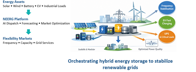 NEERG accelerates the transition to renewable energy by providing intelligent energy flexibility solutions combining infrastructure and digital platforms. Our Approach By integrating hybrid storage technologies with advanced optimization software and market participation platforms, NEERG delivers scalable solutions for modern electricity systems.
